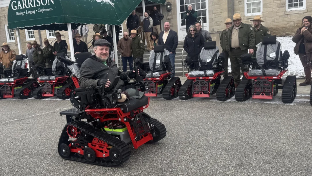 On St. Patrick’s Day this year (2026), through the efforts of dedicated people at Indiana’s Department of Natural Resources, Indiana’s State Parks took a significant leap forward and set a new bar for statewide recreational accessibility. Through the support of a grant from the Eli Lilly Endowment, each of Indiana’s State Parks now has one Track Chair…parks with Inns have two! I had the honor of taking the first one out for a test drive! (Despite the bitter cold wind and the freshly fallen snow, several media outlets were present to document the moment…here are links to stories by WFYI and WRTV).